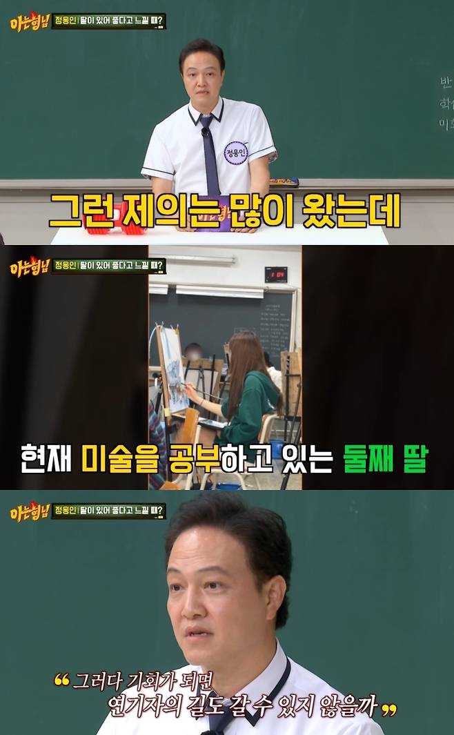 "둘째 딸은 기획사에서 연락이 많이 왔냐"는 질문에 정웅인은 "제의는 많이 왔는데, 본인이 반대를 한다"고 입을 열었다.