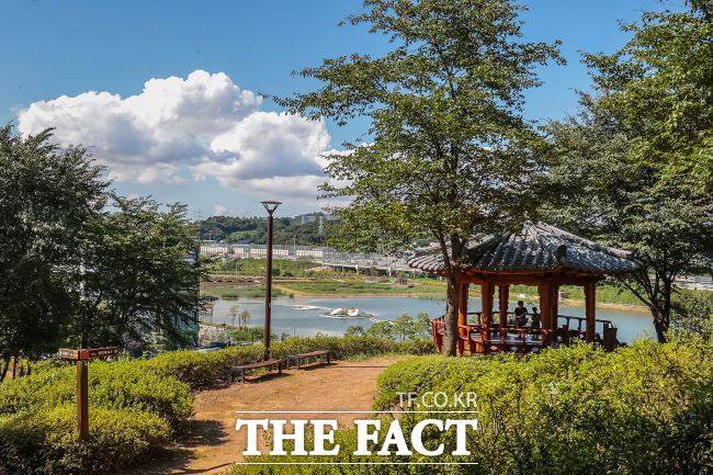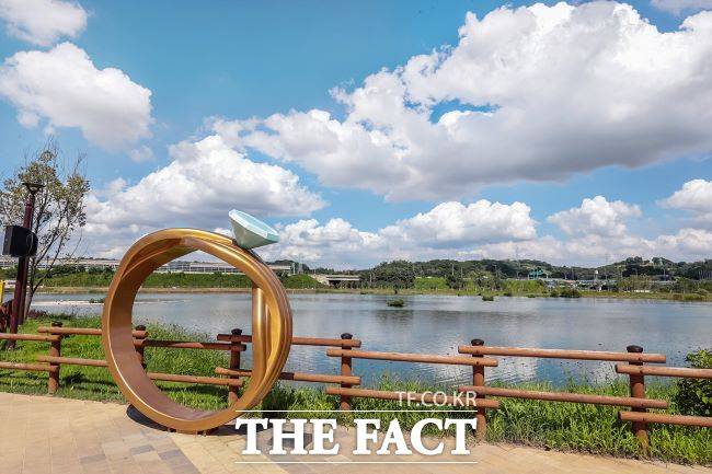 [더팩트|시흥=김동선 기자] 무더위가 한창인 여름 은계호수공원에 파란 하늘과 구름이 가득하다.