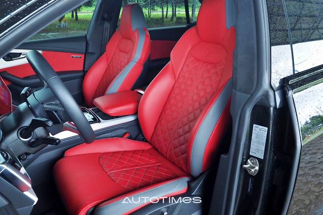 소재와 마감 수준은 단연 프리미엄 브랜드답다. 대시보드 상단, 센터 콘솔 및 도어 암레스트, 숄더까지 전부 나파 가죽패키지가 적용돼있다. 곳곳에는 스웨이드 재질을 넣어 고급감을 높였고 천정은 블랙 헤드라이닝으로 마무리했다. 검빨 조합의 컬러까지 어우러져 역동적인 모습과 품격있는 감각을 동시에 충족한다.