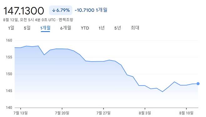 엔 시세는 12일 달러당 147엔 안팎에서 움직이고 있다. 닛케이지수는 지난 9일 0.56% 오른 35,025에 마감하는 등 안정을 되찾았다는 평가다. 당분간 급변동 가능성은 낮다는 게 일본 주식·외환시장의 관측이다.