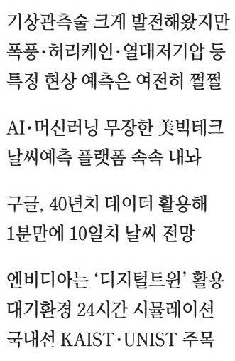 "100만곳이 넘는 지역에서 데이터를 실시간 수집해 인공지능(AI)을 활용해 1분 만에 10일 뒤 날씨를 예측한다. 하지만 종전 방식 대비 90% 이상 정확하다."