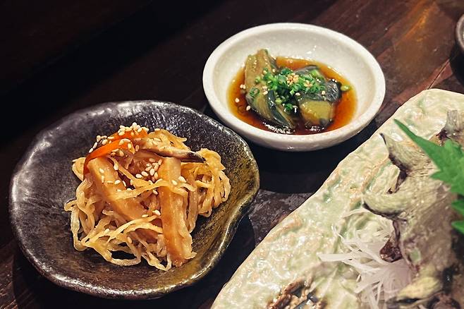 이곳 고마사바도 일품이다. 고마사바는 참깨와 고등어, 깨, 간장 그리고 김가루를 섞어 먹는 안주다. 따뜻한 밥을 주문해 오차즈케 식으로 먹어도 아주 일품이다. 식사와 이자카야의 분위기를 한 번에 누릴 수 있는 곳.