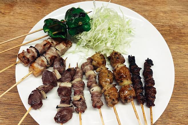 닭껍질, 닭다리, 피망, 닭연골, 삼겹살만큼은 이 집에서 반드시 주문해야 한다. 특히 닭껍질 야키토리는 후쿠오카뿐만이 아니라 일본에서도 손꼽을 맛이라고 자부한다. 껍질 특유의 물컹함 없이, 바삭거리고 쫀득한 식감이 일품이다. 조금 짜다 싶을 정도로 되어 있는 소금간도 매력적이다.