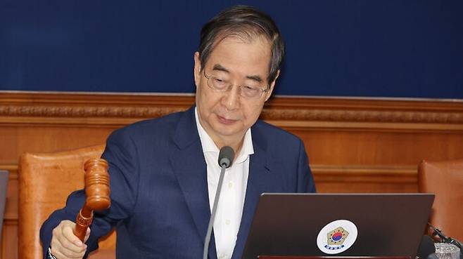 ▲ 국무회의에서 의사봉을 두드리는 한덕수 국무총리
