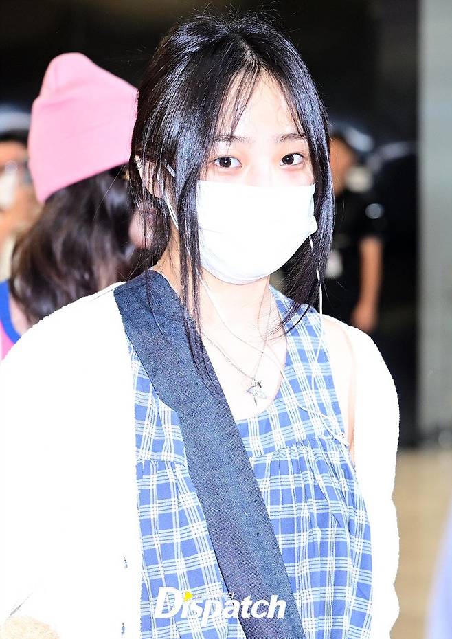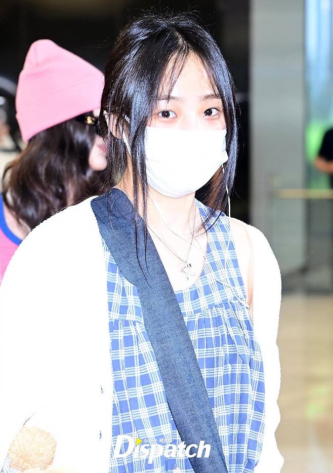 민지는 마스크에도 또렷한 이목구비로 시선을 모았다. 화장기 없는 얼굴에도 청순한 매력이 돋보였다.