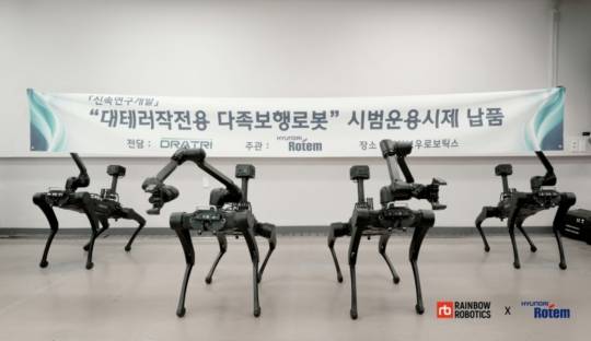 레인보우로보틱스 관계자는 "방위사업청과 국방신속획득기술연구원, 현대로템 등과의 긴밀한 협력이 있었기에 2년만에 '대테러작전용 다족보행로봇'의 시제품을 선보일 수 있었다"라며 "다각적인 협업을 이어가 AI 기능을 강화한 '대한민국 육군 맞춤형 대테러로봇'을 양산하는데 더욱 노력해 나갈 것"이라고 말했다.