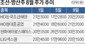 8월 이전까지 급등세를 보였던 조선과 방산주가 폭락장에서도 주가 방어에 성공하면서 당분간 상승세를 보일 것이란 의견에도 무게가 실린다.