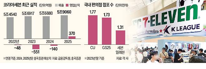 세븐일레븐은 올 4분기부터 2022년 인수한 미니스톱과의 통합 효과가 본격화할 것으로 예상한다. 2500여 개 미니스톱 매장이 세븐일레븐 간판을 새로 달았다. 매출이 부진한 매장을 대규모로 정리해 효율을 높이는 데 주력했다. 작년 말 기준 세븐일레븐 매장은 1만3130개에 이른다. 1만7000개를 넘어선 GS25, CU엔 미치지 못하지만 충분히 경쟁할 만한 수준이라는 게 자체 평가다. 미니스톱 인수 때 얹어준 웃돈(영업권)도 올해 대부분 상각할 예정이어서 내년부턴 재무 부담도 덜 수 있다.