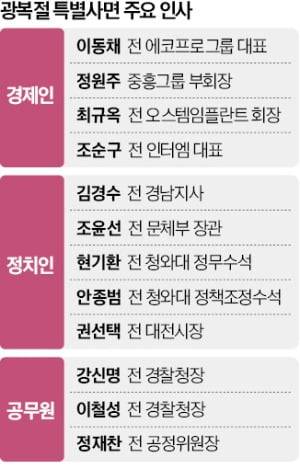 이외에 정재찬 전 공정거래위원장, 권선택 전 대전시장, 이기하 전 오산시장, 김시환 전 청양군수, 유영구 전 명지학원 이사장 등도 복권 대상에 올랐다.