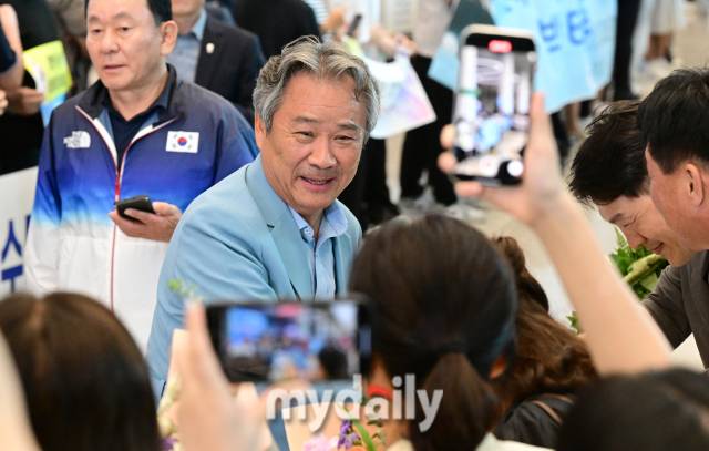 [마이데일리 = 유진형 기자] 13일 2024 파리올림픽에 출전한 대한민국 선수단 본진이 인천국제공항을 통해 귀국했다. 이기흥 대한체육회장이 국민들의 응원을 받으며 감사 인사를 하고 있다.