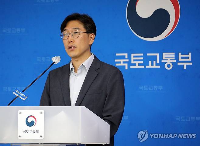 (세종=연합뉴스) 배재만 기자 = 국토교통부 정우진 도시정비기획단장이 13일 오후 정부세종청사에서 노후 계획 도시정비 세부계획 수립을 위한 정부 가이드라인과 중동-산본 신도시의 도시정비기본계획안을 공개하고 있다. 2024.8.14