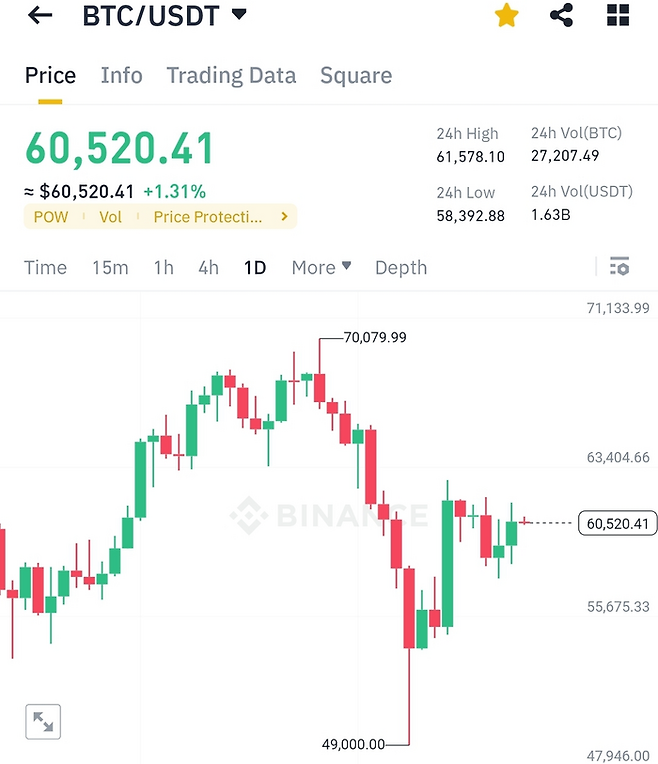 비트코인은 전날 오후 9시30분, 7월 미국의 PPI 발표 이후 한때 4% 이상 오르며 6만1500달러대까지 치솟기도 했다.