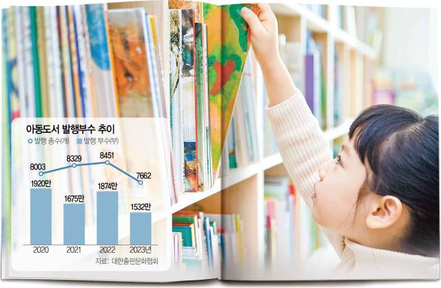 최근 대한출판문화협회가 내놓은 '2023년 출판 생산 통계'에 따르면 지난해 전체 출판사에서 발행된 아동 도서 부수는 전년 대비 18.9% 감소한 1532만 부로 최근 10년 중 가장 낮은 수준을 기록했다.