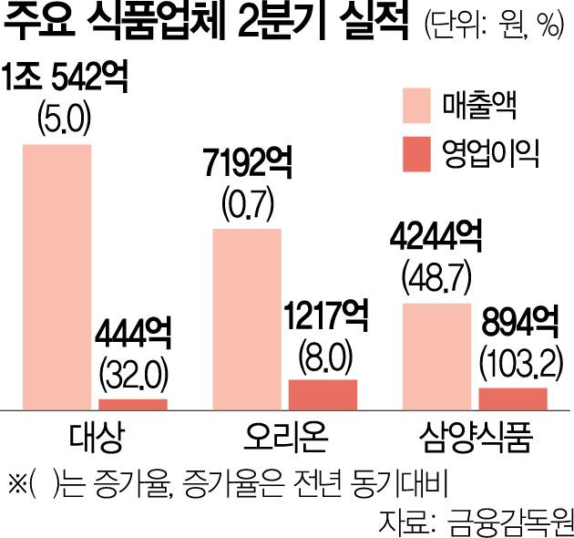 국내 소비 위축에도 불구하고 해외 K푸드 열풍에 힘입어 주요 식품사들의 2분기 실적이 큰 폭으로 개선됐다.