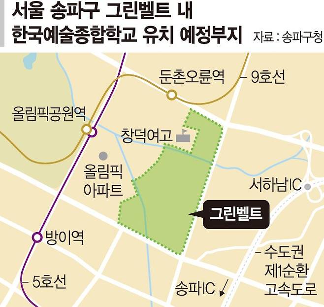 '그린벨트 해제 유력' 송파, 한예종 통합캠퍼스 유치 힘받는다