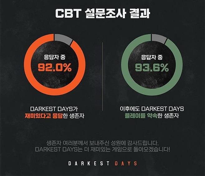 NHN '다키스트 데이즈' 테스트 참여자 93% "재밌다"
