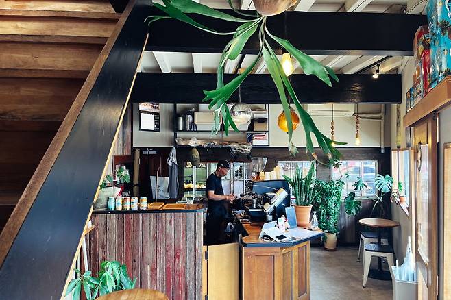 야나기바시 시장 입구에 자리한 카페. 나카스 강을 바라보며 한가히 커피를 즐길 수 있는 곳. 후쿠오카 와타나베도리역에서 도보로 5분 거리라 접근성도 좋다. 내부는 전체적으로 하와이 스타일로 꾸며져 있다. 이곳저곳 놓인 사이클과 서핑 용품을 구경하는 재미도 쏠쏠하다.