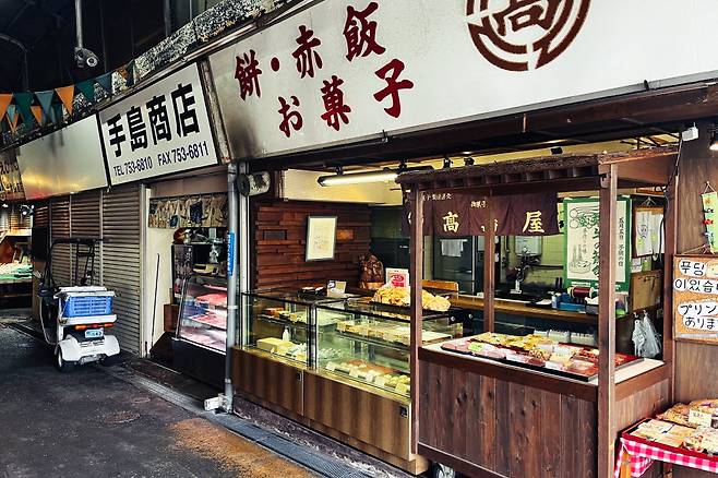 시장에서 옛날 제과점을 빼놓을 수 없다. 야나기바시 시장에서 가장 유명한 빵집 겸 제과점을 꼽으라면 역시 '타카시마야'다. 레트로한 간판만 봐도 벌써 맛있다. 아침에 빵을 굽기 때문에 오전시간 방문을 추천한다.