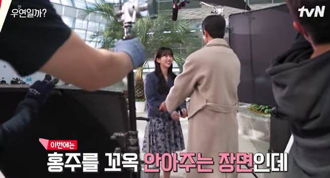 영상에선 ‘우연일까?’ 촬영 비하인드가 담겼다. 홍주(김소현 분)와 후영(채종협 분)이 달달한 애정신 촬영 비하인드부터 혼자 외롭게 떠날 후영을 위해 홍주가 후영이를 찾아온 장면 촬영 현장 모습이 소개됐다. 홍주를 꼬옥 안아주는 장면을 촬영하는 과정에서 두 사람은 안는 위치를 확인하고 포옹 장면 촬영을 했다.