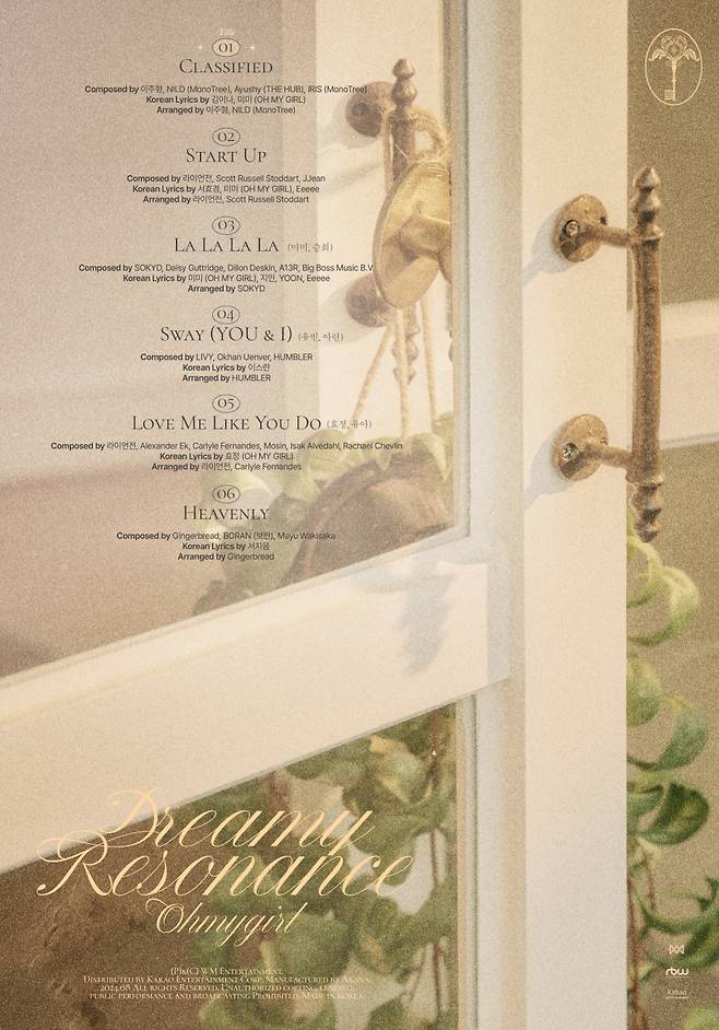 오는 26일 미니 10집 앨범 'Dreamy Resonance'로 컴백을 앞둔 오마이걸은 16일 0시 소속사 WM엔터테인먼트 공식 SNS를 통해 미니 10집 앨범 트랙리스트를 공개했다.