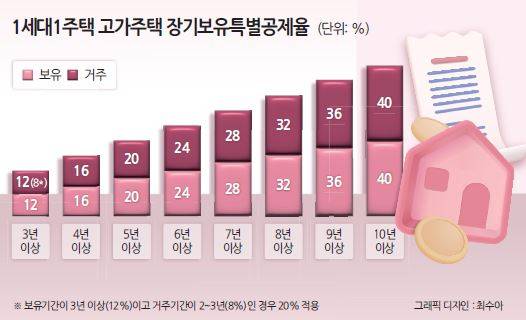 A. 물론 전체 금액에 대해서 과세되는 것은 아닙니다. 취득가와 처분가격 차이인 양도차익에서 12억원을 초과하는 비중에 대해서 과세되는 구조로 양도소득세가 계산됩니다. 이때 3년 이상 장기로 보유하는 경우 기간에 따른 장기보유특별공제가 적용됩니다. 단 거주기간과 보유기간에 따라 적용율이 차등 적용된다는 점을 유의해야 합니다.
