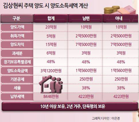 A. 계획대로 20억원에 현재 보유하고 있는 주택을 양도하고 22억원의 새 주택을 50대 50의 비율로 취득한다고 가정해 보겠습니다. 상현씨와 아내분에게는 각각 50%에 해당하는 11억원의 자금이 필요합니다. 물론 상현씨의 경우 기존 주택의 양도자금으로 자금출처 소명이 가능하지만 아내분의 경우 곤란할 수 있겠죠. 물론 증여세 공제 한도인 6억원까지 세금 없이 이전할 수 있겠지만, 나머지 5억원에 대해서는 자금출처 소명이 어려울 수 있습니다.
