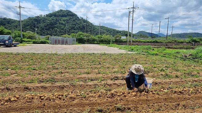 | ▲ 한 여름 감자캐는 박용석 친환경 농민 출처 : 임진여울영농조합법인 |