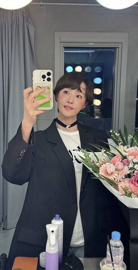 16일 김선아는 자신의 계정에 두 장의 거울 셀카를 공개했다. 축하 꽃다발 옆에서 시니컬한 차림새로 우아한 인형 같은 미모를 자랑하는 김선아는 나이가 무색하게도 사랑스러움의 절정이었다.