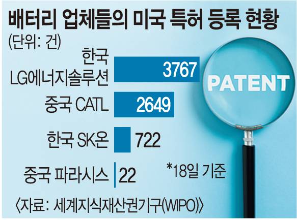 [단독] 미국 특허… LG엔솔 3767개, 파라시스 배터리는 22개