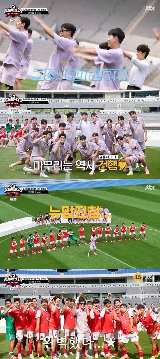 이어 그는 "축구 덕분에 체력이 좋아져 춤에도 도전하게 됐다. 최근 콘서트의 80퍼센트가 춤을 추는 거다. 예전에는 힘들어서 못했는데"라고 밝혀 놀라움을 자아냈다. 이에 김성주가 "오늘도 챌린지를 보여주신다고"라고 운을 떼자 임영웅은 선수들과 함께 곧장 무대에 나설 준비를 했다.