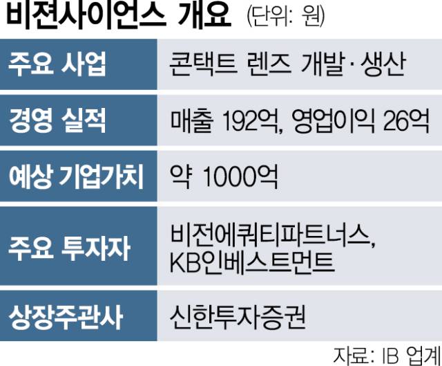 국내 컬러 렌즈 주문자 생산 제조(OEM) 업체인 비젼사이언스가 기업공개(IPO)를 추진한다. 회사가 기대하는 기업 가치는 약 1000억 원이다.