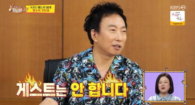 그는 자신이 출연한 '사당귀' 회차의 시청률 그래프를 가져가며 어필했지만, 돌아오는 반응은 냉담했다. 센터장은 "많이 부족하다. 두자리 이상 가야한다"며 "공영방송이지 않나. 호통이나 후배들한테 야단치는게 가끔 심의에 올라온다. 어른들이 봤을때 공영방송에서 불편한 애기 야단치듯 하는게 적절하지 않다고 박지영CP가 시청자위원회 불려갔다 왔다"고 설명했다. 김숙도 "지난주엔 반성문도 쓰셨다더라"라고 폭로해 웃음을 자아냈다.