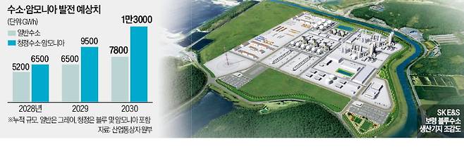 2030년 청정수소 발전 시장을 전체 발전량의 약 2%인 연 1만3000GWh 규모로 확대하는 게 정부의 목표다. 이를 위해 연간 200만t 규모의 암모니아(수소는 80만t)가 필요하다. 이를 청정암모니아 유통 예상 가격(t당 700달러이상)으로 계산하면 2030년 총 60조원 시장이 생길 것으로 추산된다.