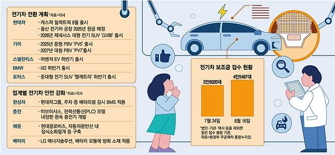 19일 업계에 따르면 인천 화재 후폭풍 속에서도 현대자동차·기아 등 국내에서 차량을 판매하는 완성차 업체·수입차 업체 중 예정됐던 전기차 신차 출시 일정을 미룬 곳은 한 곳도 없는 것으로 파악됐다. 전기차 캐즘(성장 정체)에 화재가 겹쳤지만, 장기적인 방향에서의 전동화 전환에 대한 변동은 없다는 입장이다.