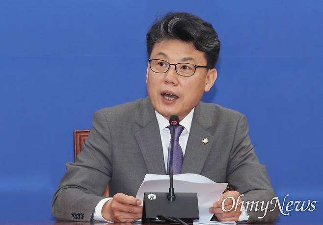 | ▲ 진성준 더불어민주당 정책위의장이 20일 오전 서울 여의도 국회에서 열린 원내대책회의에서 발언하고 있다. |