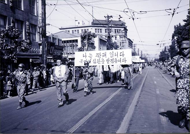 | ▲ 5.16 이후 서울 시내를 돌며 조리돌림을 당하는 정치 깡패 이정재 |