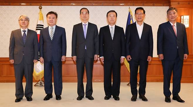 한덕수 국무총리는 20일 정부서울청사에서 신임 규개위 민간위원 3명과 최 옴부즈만에게 위촉장을 수여했다. 규개위는 정부의 규제정책을 심의·조정하고 규제 심사·정비 등에 관한 사항을 종합적으로 추진하기 위해 설치된 기관이다. 국무총리와 국무조정실장, 기획재정부·행정안전부 장관 등 정부 측 당연직 위원 8명과 민간위원 17명 등 25명으로 구성된다.
