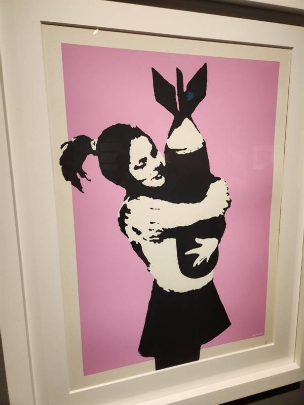 | ▲ 뱅크시의 화제작 ‘풍선과 소녀’. ‘풍선과 소녀’는 소더비 경매장에서 파쇄돼 유명해졌는데, 이번 전시에 나온 작품은 파쇄되지 않은 버전이다. |