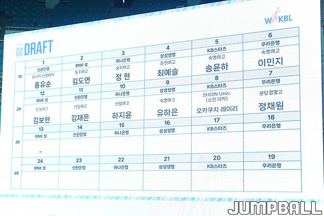 [점프볼=부천/유용우 기자] 20일 부천체육관에서 열린 2024~2025 WKBL 신인선수 드래프트, 이번 드래프트에서는 총 28명의 참가자 가운데 12명이 프로팀의 선택을 받았다.