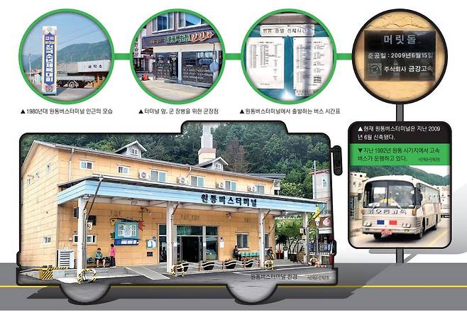 당시 원통버스터미널은 인근 군부대 장병들이 휴가를 나가기 위해서는 반드시 거쳐야 하는 관문이었다. 버스터미널이 처음 생겼을 때는 주변에 마땅한 상권도 없이 좌판만 있었지만 버스를 이용하려는 사람들이 점점 늘어나자 상권이 형성되기 시작했다.
