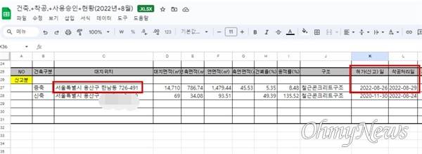 <오마이뉴스> 취재를 종합하면, 영세 건축 설계·감리업체인 A사는 지난 2022년 8월 대통령 관저 증축 공사와 관련한 설계·감리 계약을 따냈다. 업체가 용산구청에 관련 설계·감리를 신고한 일자는 같은 해 8월 26일이며, 착공일은 3일 뒤인 29일이다.