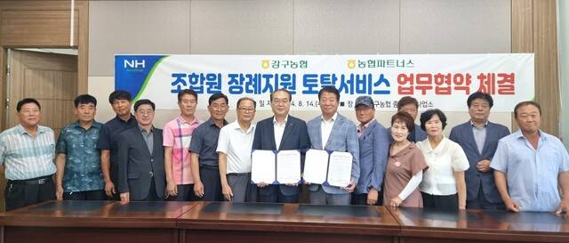강구농협과 농협파트너스 경북지사(지사장 윤병록)는 최근 강구농협에서 조합원 장례지원 서비스 활성화를 위한 업무협약을 했다(사진).