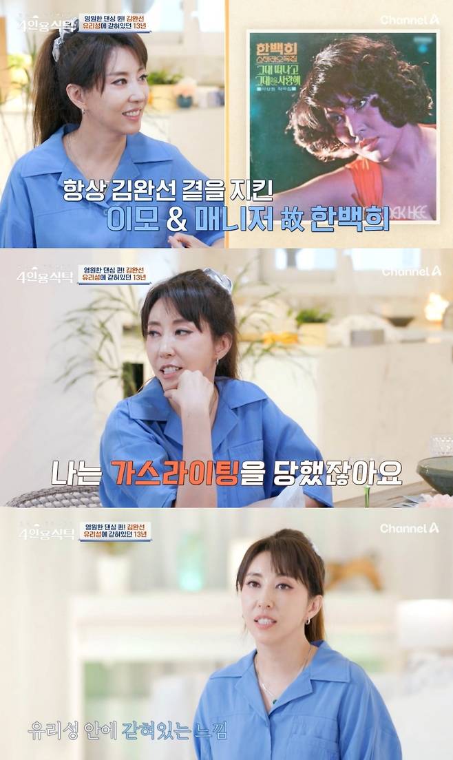 '원조 디바' 39년 차 가수 김완선이 데뷔 전 미성년자 시절부터 이모이자 매니저 역할을 담당했던 故 한백희로부터 당했던 가스라이팅 피해를 고백했다.