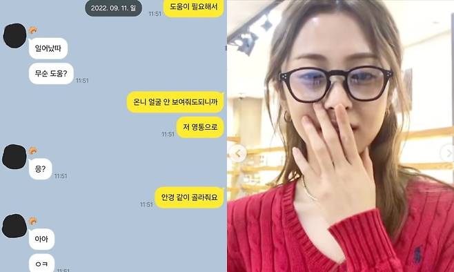 이에 사쿠라가 어떤 도움이 필요한지 묻자, 허윤진은 "얼굴 안 보여줘도 되니까 영통(영상통화)으로 안경 같이 골라 줘요"라고 대화를 이어 나갔다.