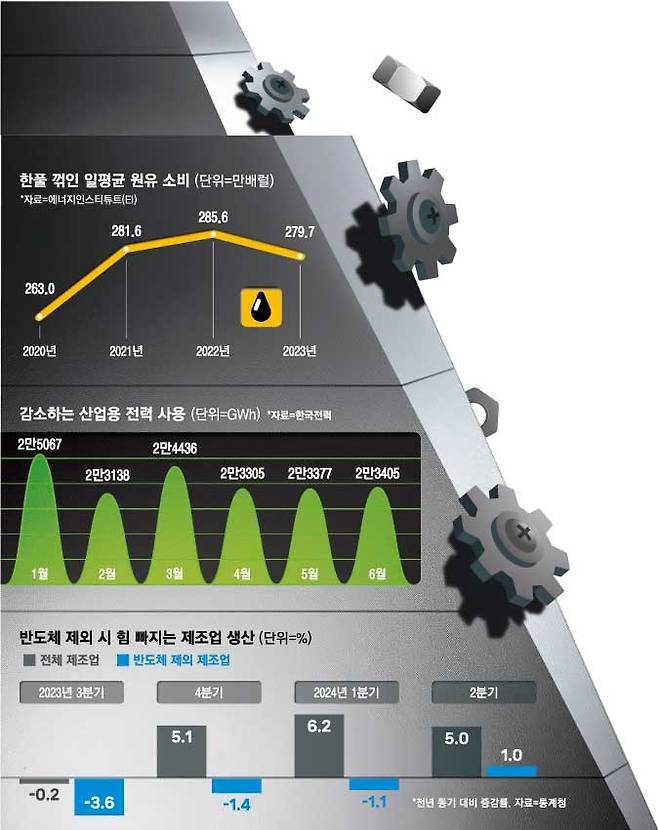 “반도체 너무 잘나가서 몰랐네”...제조업 뒷걸음, 전기·원유 사용량도 줄었다