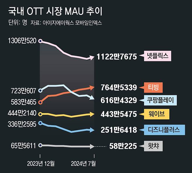 다만 하반기부터 넷플릭스에서 기대작이 여럿 나오는 만큼 이 같은 토종 OTT의 약진이 지속되지 않을 수 있다는 전망도 나온다. 넷플릭스는 역대 최고 흥행 성적을 낸 오징어게임 시즌 2를 12월 26일 공개할 예정이다. 미슐랭 셰프와 재야의 음식 고수들의 대결을 다룬 ‘흑백요리사’를 9월 공개하는 등 시청자의 눈길을 끄는 콘텐츠를 대거 준비 중이다.