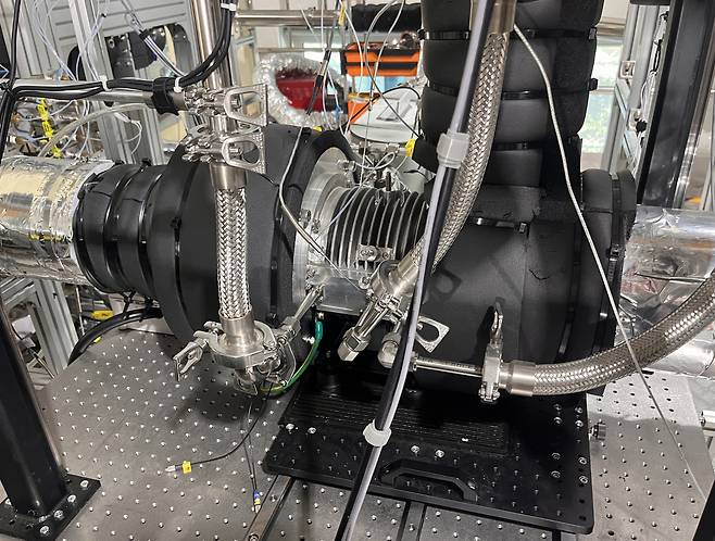 | ▲ 한국에너지기술연구원 연구진이 개발한 공기를 냉매로 적용한 초고속 컴팬더 |