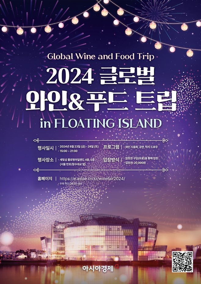 아시아경제는 23일부터 이틀간 서울 서초구 세빛섬 플로팅 아일랜드에서 '2024 글로벌 와인 앤 푸드 트립(Global Wine & Food Trip)'을 개최한다.