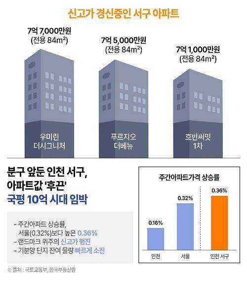 8월 2주차 한국부동산원 통계에서 인천 서구 0.36% 상승, 서울(0.32%) 웃돌아