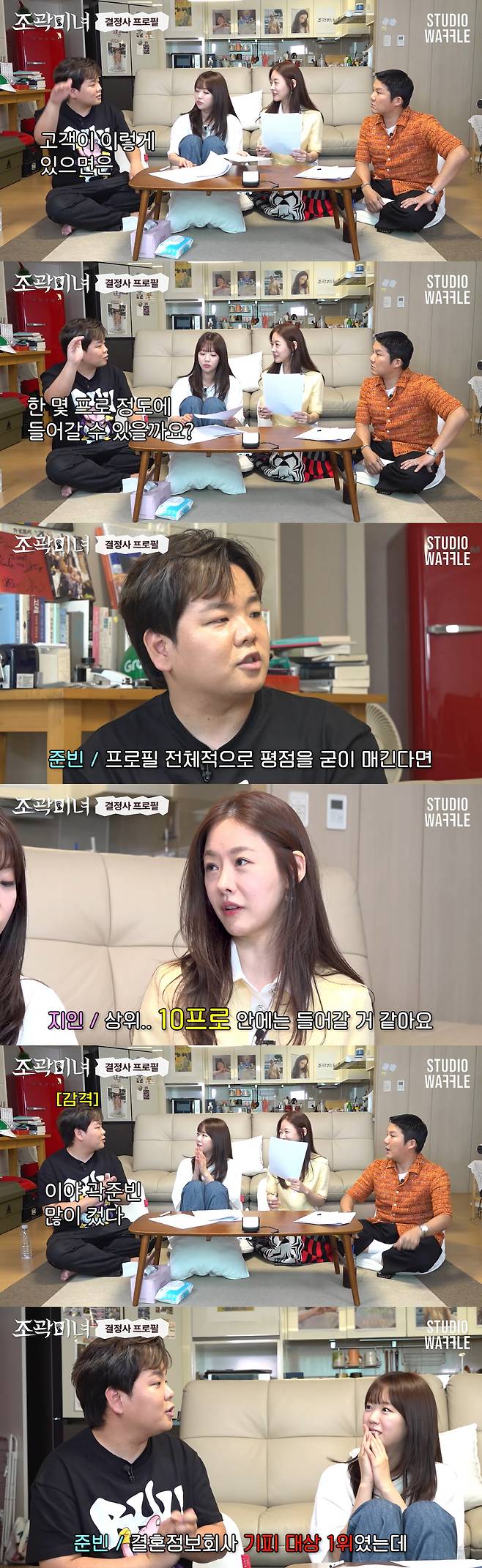 이에 성 대표가 "이상형과 모든 걸 통틀어서 봤을 때는 상위 10프로는 들어갈 것 같다"고 하자 곽튜브는 "곽준빈 많이 컸다. 결혼정보회사 기피 대상 1위였는데, 끝나고 (결정사) 가입할 거다"라고 감격해 해 웃음을 자아냈다.
